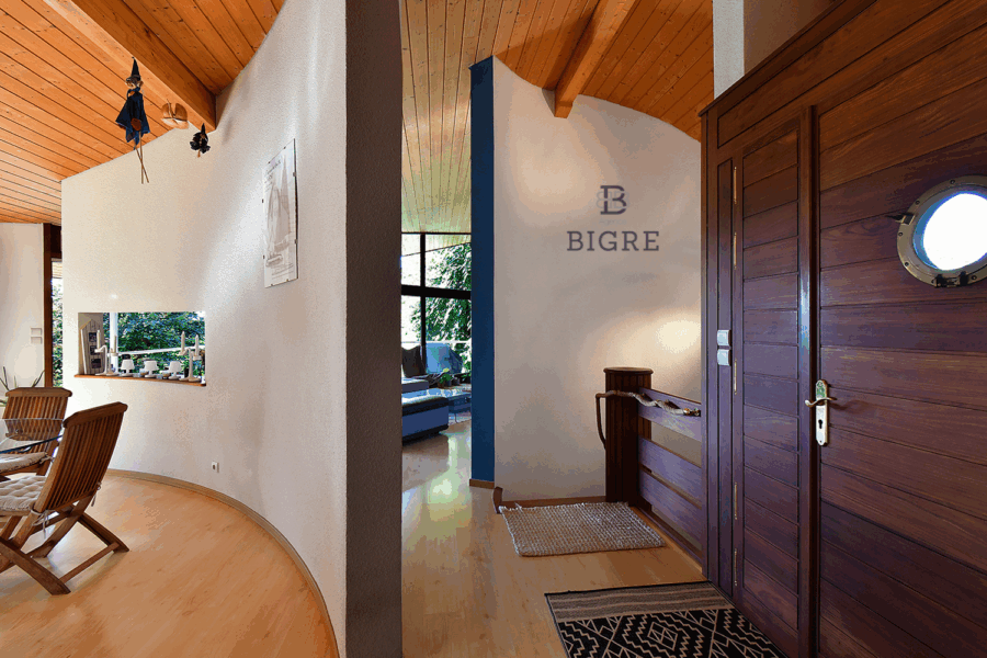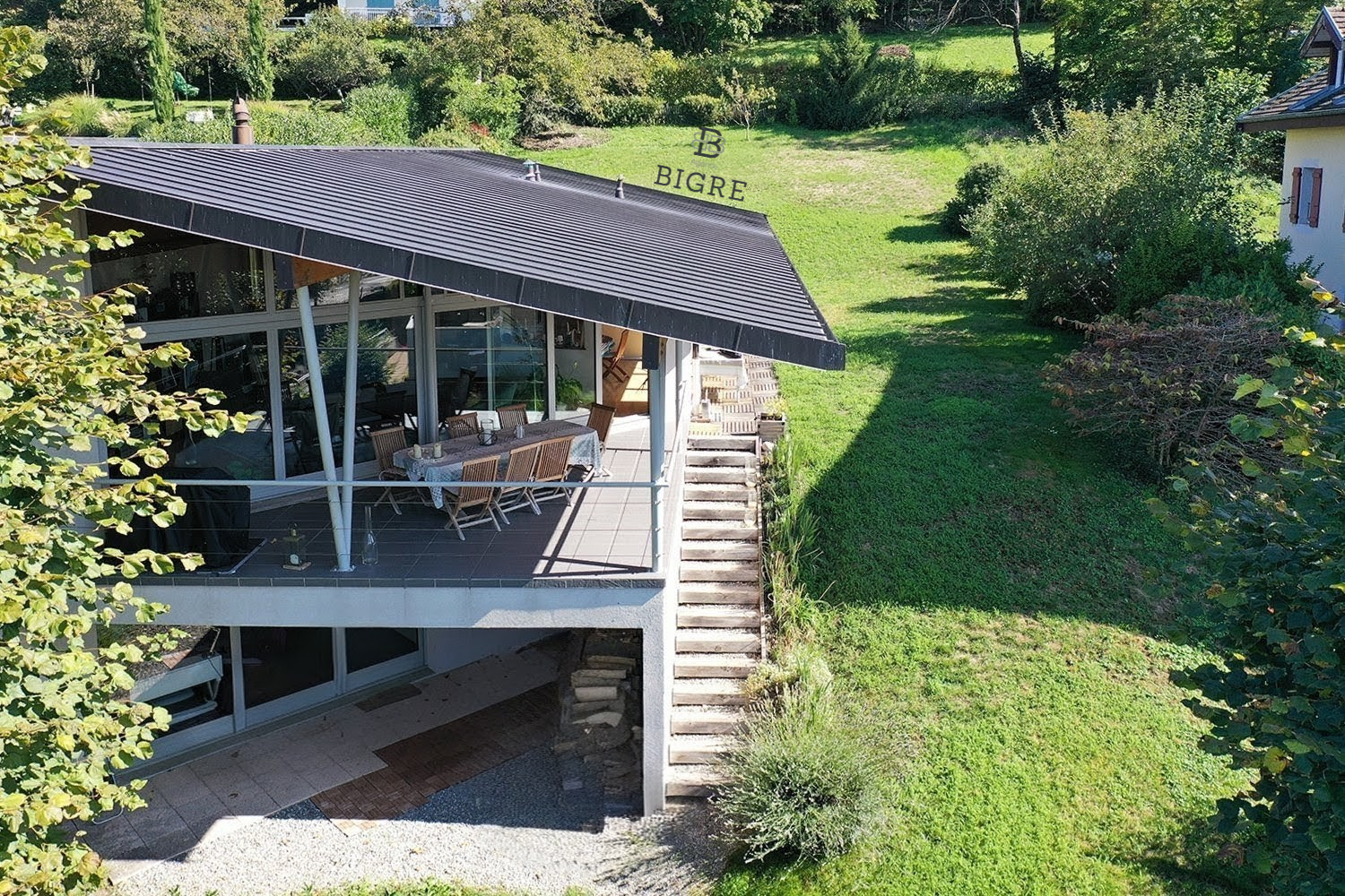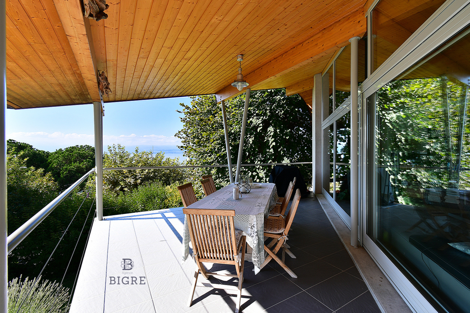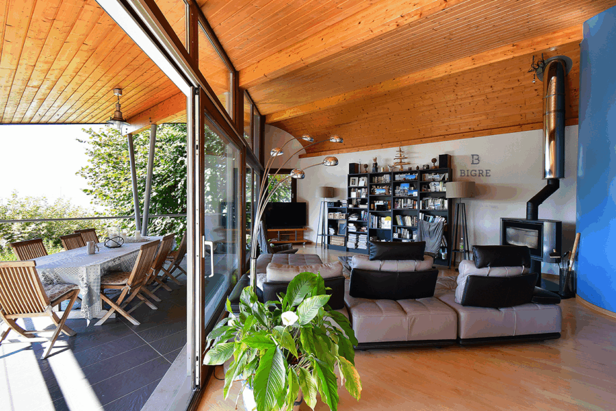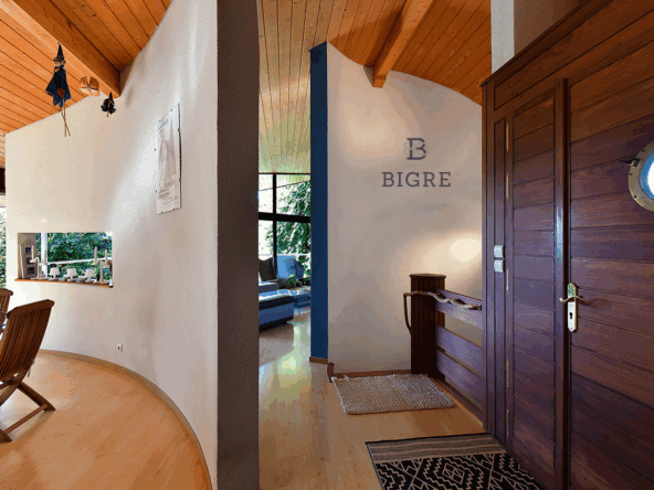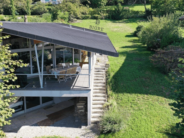 Édifiée en 1999 sur une parcelle arborée de 1 040 m², cette maison d’architecte développe environ 170 m² et offre un cadre de vie rare, entre élégance, sérénité et panorama d’exception.