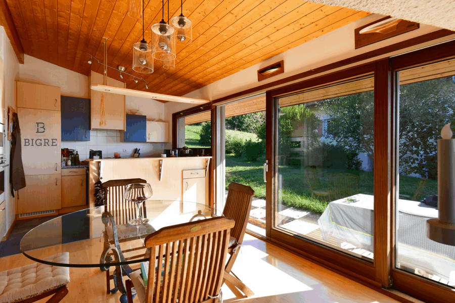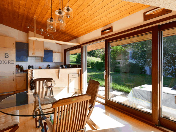 Côté prestations, chauffage au sol, poêle à bois, triple vitrage (côté nord) et stores électriques garantissent un confort optimal en toutes saisons.